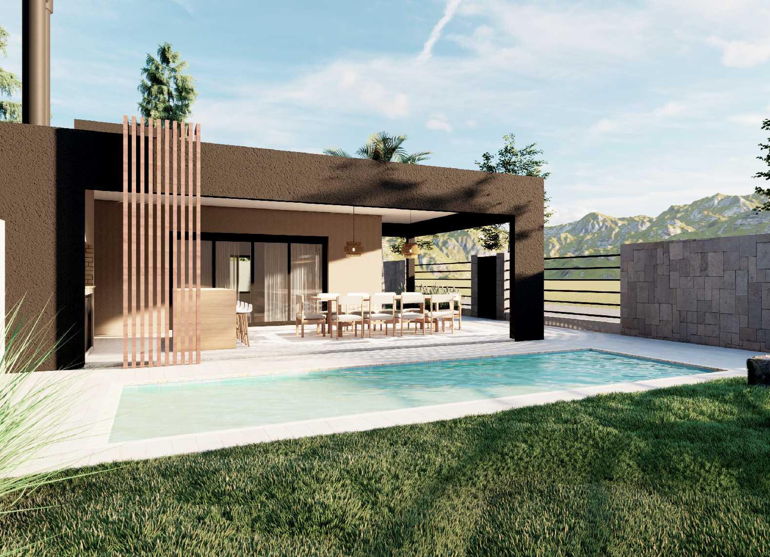 Con una superficie total de 80m², de los cuales 52m² son cubiertos y 28m² semicubiertos, este proyecto ofrece un diseño compacto y funcional. Incluye una galería con parrilla, cocina comedor integrada con living, un dormitorio y un baño, ideal para disfrutar de espacios cómodos y prácticos.